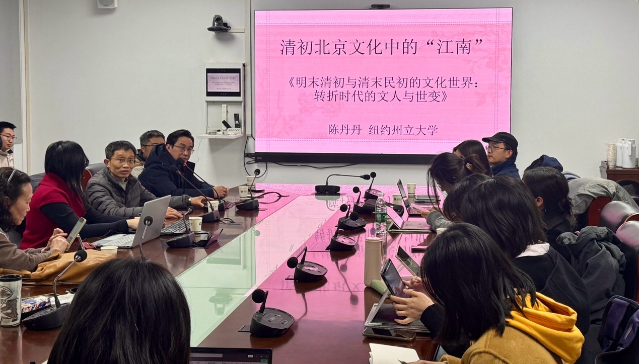 2025年12月17日晚,哈佛大学博士、纽约州立大学法明代尔分校历史政治与地理系教授、哈佛大学费正清中国研究中心Associate in Research,Brill博睿出版社Series Modern East Asia in a Global Historical Perspective主编之一陈丹丹老师应学院邀请,作了题为“清初北京文化中的‘江南’”的学术讲座。