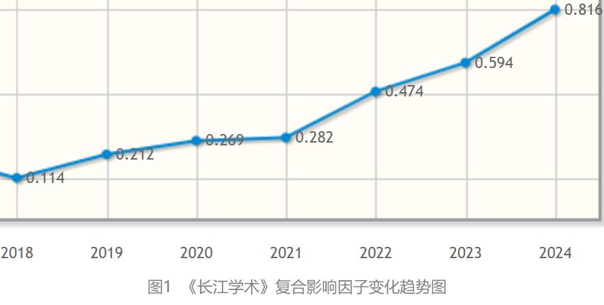 根据中国科学文献计量评价研究中心近日发布的《中国学术期刊影响因子年报》(2025年版),《长江学术》复合影响因子0.816,综合影响因子0.571,分别比上一年提升0.222、0.154。