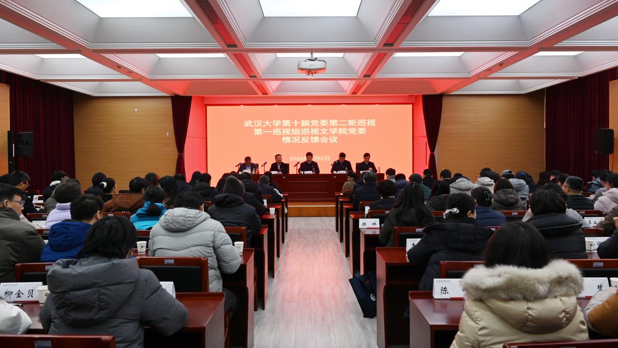 1月5日,武汉大学第十届党委第二轮巡视第一巡视组巡视足球博彩网站 党委情况反馈会召开。校党委常务副书记、党委巡视工作领导小组副组长沈壮海、党委常委、副校长袁玉峰出席会议并讲话。