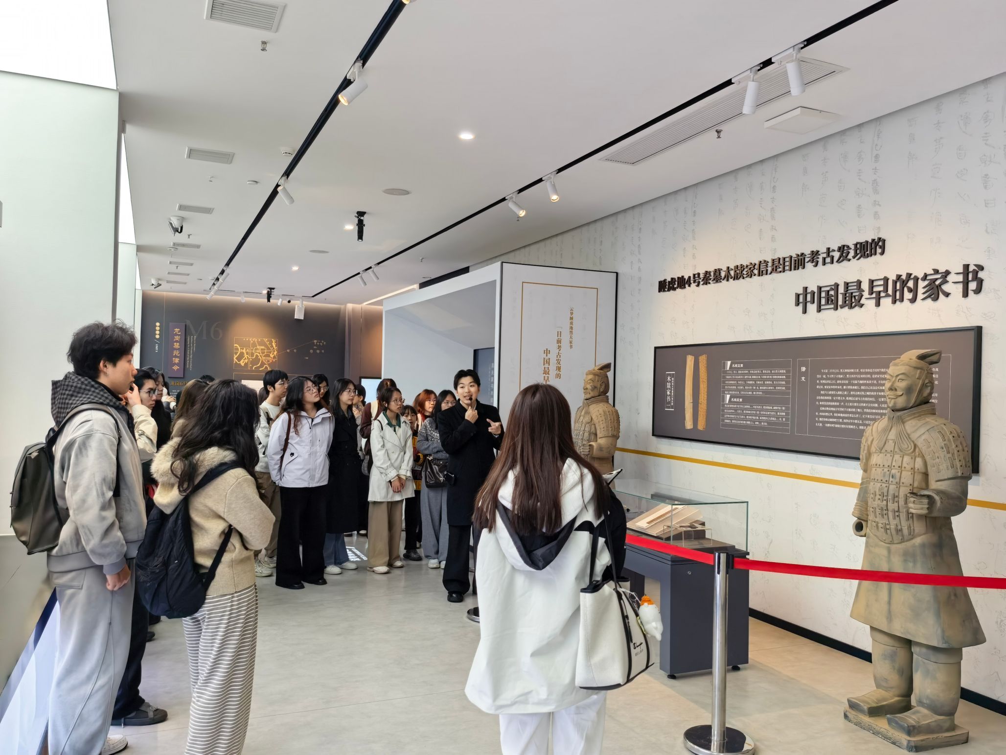 “我们云梦祥山博物馆历史悠久、馆藏丰富,是国家二级博物馆,共有藏品5000多件,一级文物49套……”在讲解员娓娓道来的话语中,我们循着文物的脉络穿梭展厅,走近课本上的楚秦历史。汉语言文学的专业视角,更让我们读懂了文字与文明交织的千秋风华。