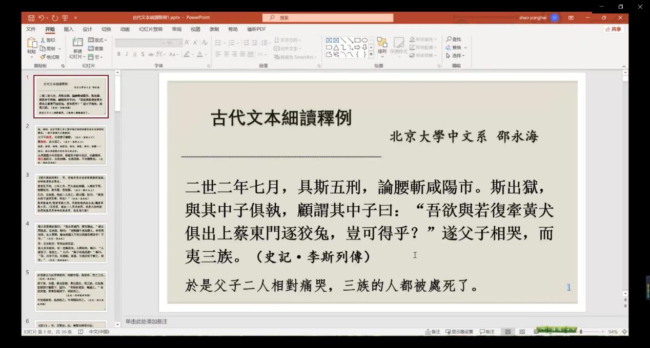 讲座伊始,邵永海教授开门见山地提出朱熹所云“今人读书大患是不仔细”,引出本次讲座的主题“古代文本细读释例”。
