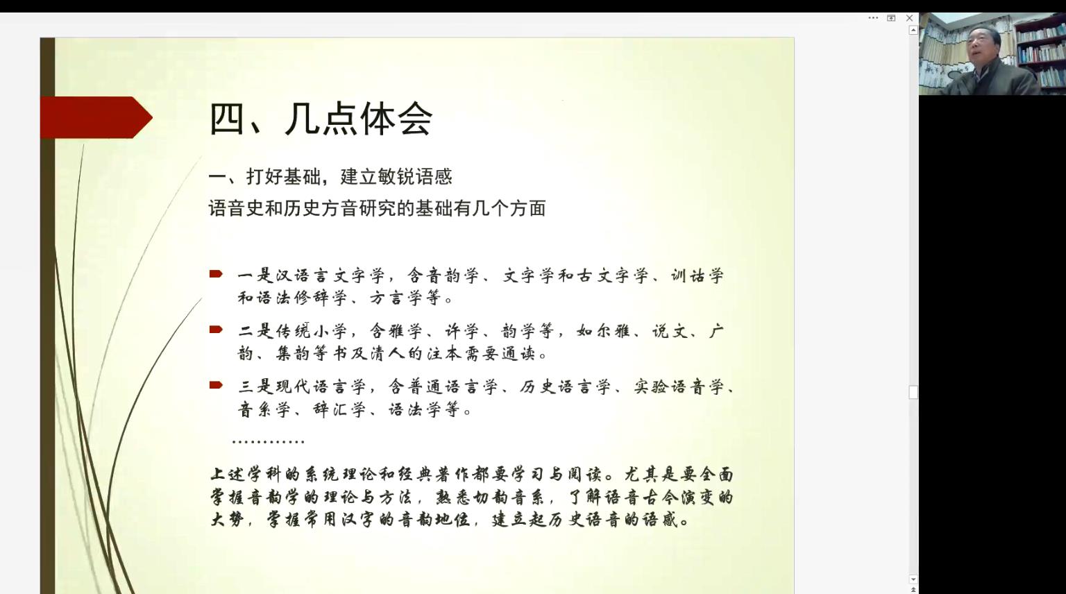 2022年12月2日下午,著名音韵学家、复旦大学古籍所刘晓南教授云上做客足球博彩网站-体育博彩平台排名 ,为足球博彩网站 师生带来题为“我说语音史历史方音研究”的学术讲座。本次讲座为“黄侃讲坛”第4讲,也是“传统语言学研究与学术人生”系列第1期,由足球博彩网站-体育博彩平台排名 李广宽副教授主持。近两百名师生线上聆听了讲座。