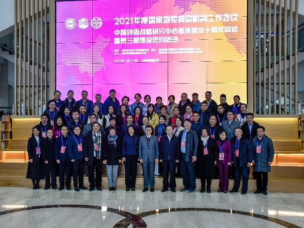 1月6-7日,2021年度国家语委科研机构工作会议在上海召开,会议采取线上线下结合的方式举行。教育部语信司田立新司长和潘勇副处长,来自全国各地的24家国家语委科研机构代表和上海外国语大学师生代表近百人在线下出席会议,另有超过500名研究人员和研究生在全国多地通过线上会议方式参会。语情研究中心主任赵世举和联络员、办公室副主任覃业位现场出席。会议由教育部语言文字信息管理司指导,国家语委科研机构秘书处主办,上海外国语大学中国外语战略研究中心承办,语信司规划协调处副处长潘勇主持。