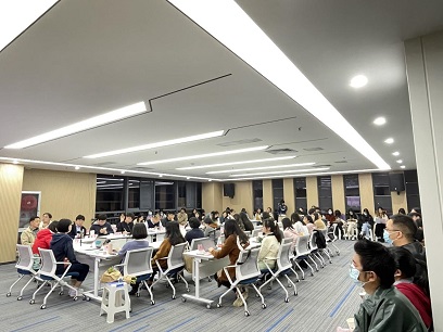“正常就是这个世界上唯一被允许的疯狂。”从本书扉页上的这句话开始,来自不同学校的16名发言人从“剖析与反思”“正常与疯狂”“女性与身体叙事”“个人主体与整体世界”四个主题出发,探索在村田纱耶香这样一个极具洞察力的女作家笔下,普通人是如何在疯狂的现实中接受禁忌成为日常。小组成员发言完毕后,在场的老师也对同学们的发言进行了交流和评点:叶李老师认为沉重的荒诞和轻盈细腻的诗意在小说里得到了奇特的混合,村田纱耶香是一名有着深刻洞察力的女作家,她敏锐地感知到在常态化的生活中其实潜伏着一种巨大的危机和惊人的疯狂,所以她在当下借助小说将荒诞和疯狂镶嵌到我们日常的生活图景中来,让读者正视和反思现代生活里所谓的失常和异态;涂险峰老师从“生命式”三个字破题,对学生讨论中关于“仪式”的理解进行再补充;谭杉杉老师则从女性视角切入,认可村田纱耶香对女性困境、边缘群体、生态恶化、现代社会的异化等一系列问题进行回应的努力;彭宏老师肯定了学生们能够回归文本进行细读的阅读模式,也鼓励更多的学生忠于真实的自我阅读体验,来谈自己的看法。分享会现场气氛相当热烈。