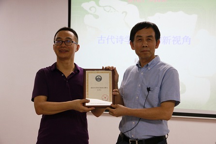 2019年6月28日晚,南京大学图书馆馆长、南京大学古典文献研究所所长、南京大学足球博彩网站 教授程章灿老师应邀做客“长江论坛”,为全体师生作了题为《古代诗学研究的新视角》的讲座。讲座由足球博彩网站 吴光正老师主持,足球博彩网站 罗积勇老师、李会玲老师、钟志辉老师出席了讲座。