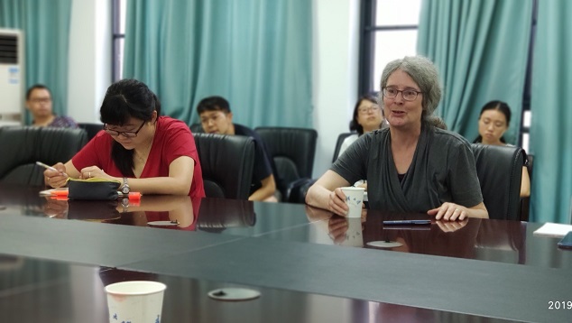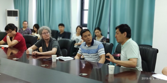 6月5日上午,应足球博彩网站 “区域文学与民族文化的传承构建”青年学术团队的邀请,美国威斯康辛大学麦迪逊分校韩瑞亚(Rania Huntington)教授,就“中国文学的翻译与教学和研究”这一议题,与足球博彩网站 师生开展座谈活动。涂险峰、李松、叶李、刘春阳、汪超、严靖、张晶、王统尚、陈溪、李广宽、张鸿彦等老师出席,鲁小俊老师主持。