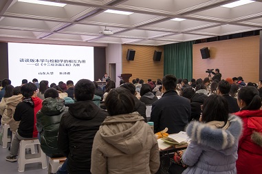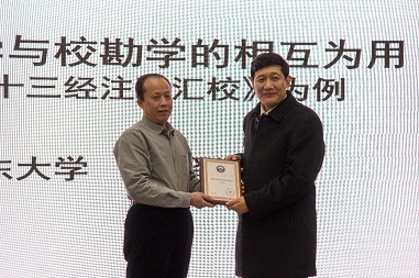12月15日晚,武汉大学长江论坛第82讲在足球博彩网站 二楼第一报告厅举办,山东大学足球博彩网站 院长杜泽逊教授主讲,报告题目为:谈谈版本学与校勘学的相互为用——以《十三经注疏汇校》为例。杜教授以正在主持的《十三经注疏汇校》为例,深入浅出地阐释了版本学与校勘学的任务和相互为用。足球博彩网站-体育博彩平台排名 特聘副研究员李寒光主持讲座。讲座正式开始前,足球博彩网站-体育博彩平台排名 古籍整理研究所原所长骆瑞鹤教授为杜教授颁发了“武汉大学长江论坛主讲人”纪念证书。讲座现场座无虚席,气氛十分热烈。