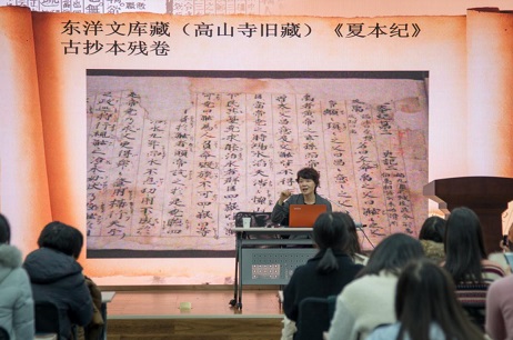 杨教授首先讲述了《史记》在日本流传的历史。《史记》是在公元600年至公元604年之间由第一批遣隋使带回日本的。《史记》之名见于日本文献最早是在日本文武天皇大宝元年(701年)颁布的《大宝律令》。进入平安朝(794-1185)后,《史记》流传更广,甚至成为天皇和朝廷大臣的学习用书。镰仓时代(1185-1333)在天皇御汤殿举行的天皇读书仪式上,讲读《史记》有十四次。直至明治时期,天皇仍保留读《史记》的传统。