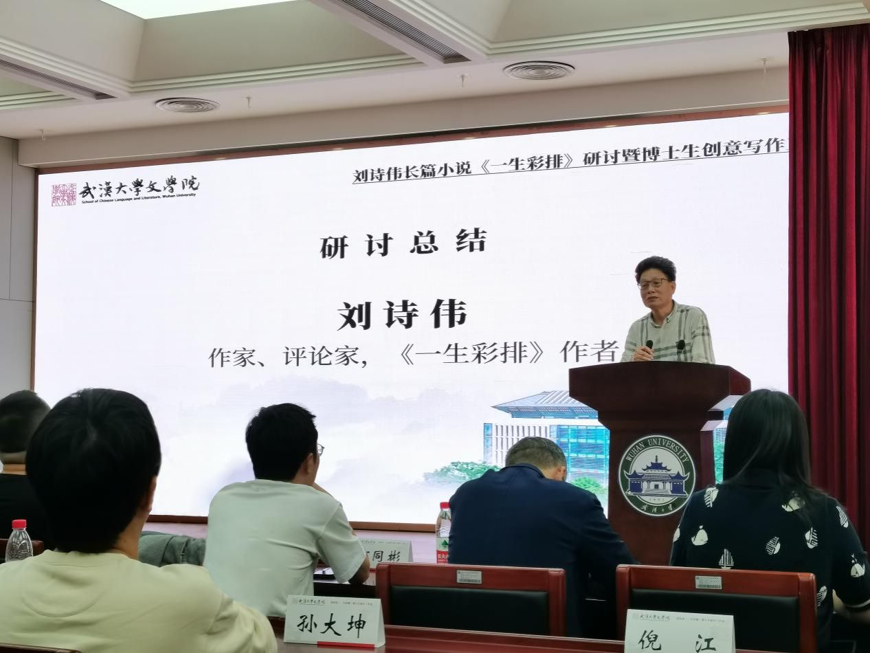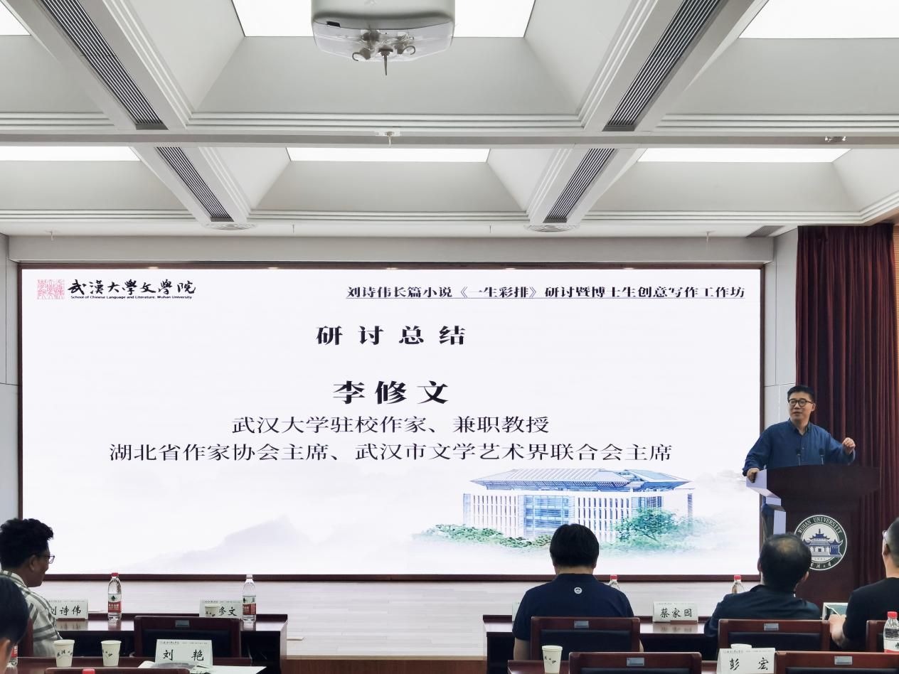 2023年10月18日,湖北作家刘诗伟长篇新作《一生彩排》研讨暨博士生创意写作工作坊在足球博彩网站-体育博彩平台排名 举行。本次活动由足球博彩网站-体育博彩平台排名 、武汉大学汉语写作研究中心主办,武汉大学驻校作家项目团队任学术指导。武汉大学驻校作家项目主持人、足球博彩网站-体育博彩平台排名 萧映教授担任本次活动主持人,足球博彩网站-体育博彩平台排名 2022级写作学博士生邹茜、莫丽君为本次活动的召集人。来自《文学评论》杂志社、《扬子江文学评论》杂志社、《海峡文艺评论》杂志社、《江汉论坛》杂志社、《芳草》杂志社、《长江丛刊》杂志社、作家出版社、天津古籍出版社、《长江日报》“江花”副刊、《湖北日报》“东湖”副刊、湖北省作家协会、江汉大学、湖北警官学院、武汉大学等单位的专家学者出席本次研讨。