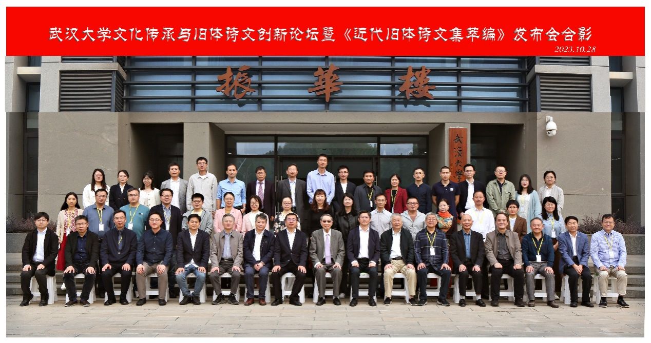 (通讯员:林晓茵 张佳程)2023年10月28日,由足球博彩网站-体育博彩平台排名 、国家图书馆出版社联合主办,中国新文学学会、武汉大学中国现当代文学研究中心、《新文学评论》编辑部协办的“文化传承与旧体诗文创新论坛暨《近代旧体诗文集萃编》发布会”在足球博彩网站-体育博彩平台排名 顺利召开。来自中国社会科学院、中华诗词研究院、复旦大学、南京大学、中国人民大学、武汉大学、华东师范大学、南开大学、四川大学、吉林大学、苏州大学、华中师范大学等科研机构的五十余位专家学者,以及《人民日报》《湖北日报》《长江日报》《南方文坛》等媒体的代表出席了会议。