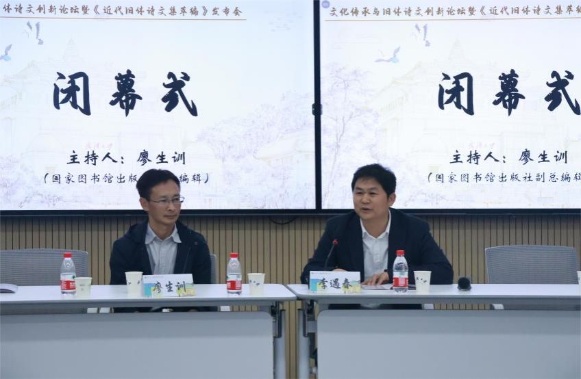 会议闭幕式由国家图书馆出版社副总编辑廖生训主持,李遇春教授做大会总结。他指出,本次会议重点关注《近代舊體詩文集萃編》的三个价值:一是《萃編》具有高度的时代性与当下性,符合今日中华优秀传统文化复兴的题中之义;二是《萃編》富有很高的文献与史料价值,为新时代的学术带来了新的材料;三是《萃編》具有很高的文学史价值,进一步还原和重构近现代文学现场。