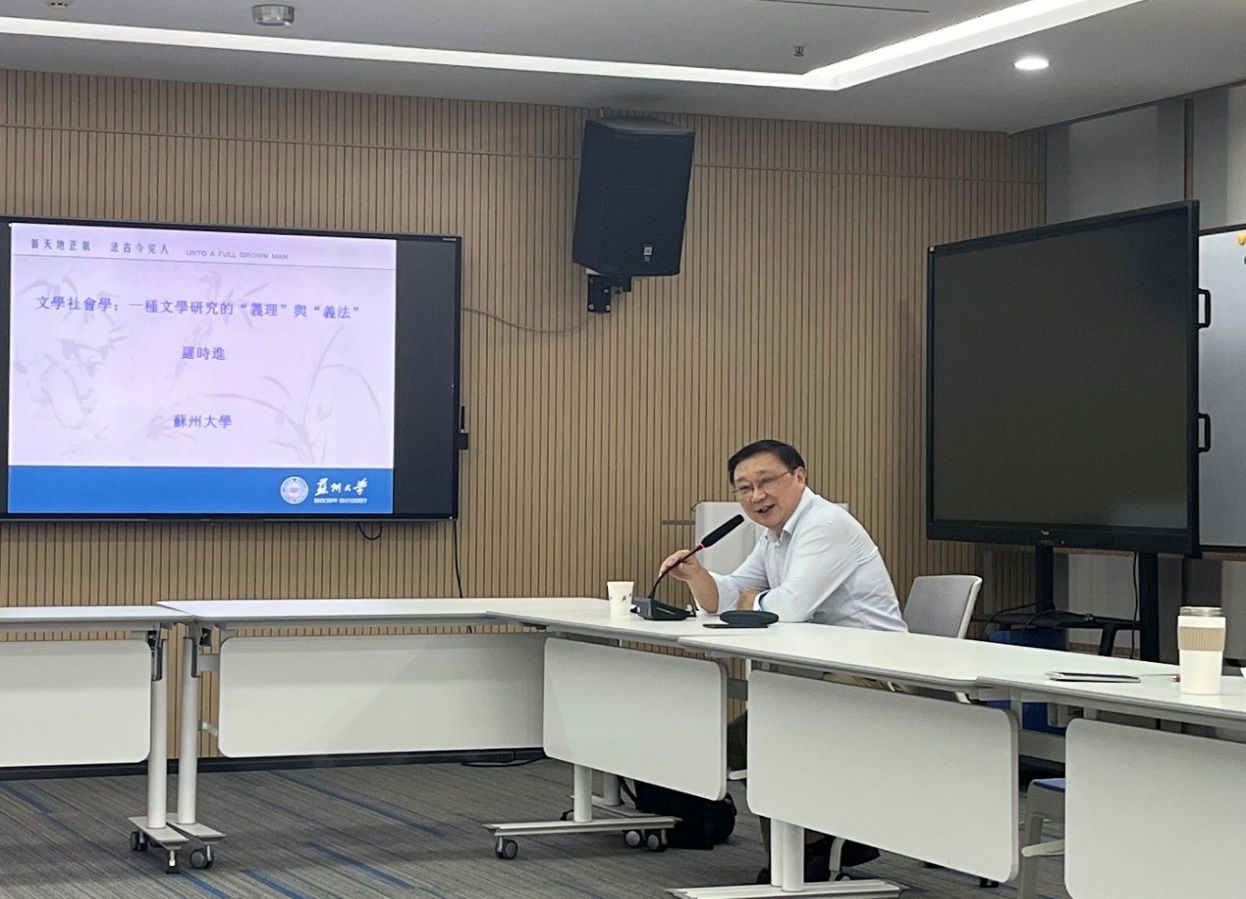 11月3日下午,苏州大学特聘教授罗时进先生应邀在足球博彩网站 进行了一场题为“文学社会学:一种文学研究的‘义理’与‘义法’”的学术讲座。讲座由鲁小俊教授主持,华中师范大学陈燕妮、中南民族大学萧晓阳、武汉大学陈水云、孟国栋、王启玮、沈相辉等老师出席。
