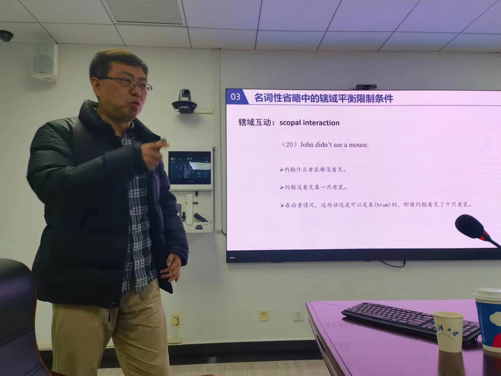 2023年12月9日,北京外国语大学张天伟教授应邀为足球博彩网站 师生作题为“省略的句法语义互动及限制条件研究”的学术讲座。本讲座是“武汉大学130周年校庆活动·足球博彩网站 高端系列讲座”之一。讲座由汉语言文字学教研室陈练文老师主持,足球博彩网站 赫琳、阮桂君、欧阳晓芳、杨旭、刘翔宇及外语学院张妍岩等老师和相关专业学生参加了讲座。