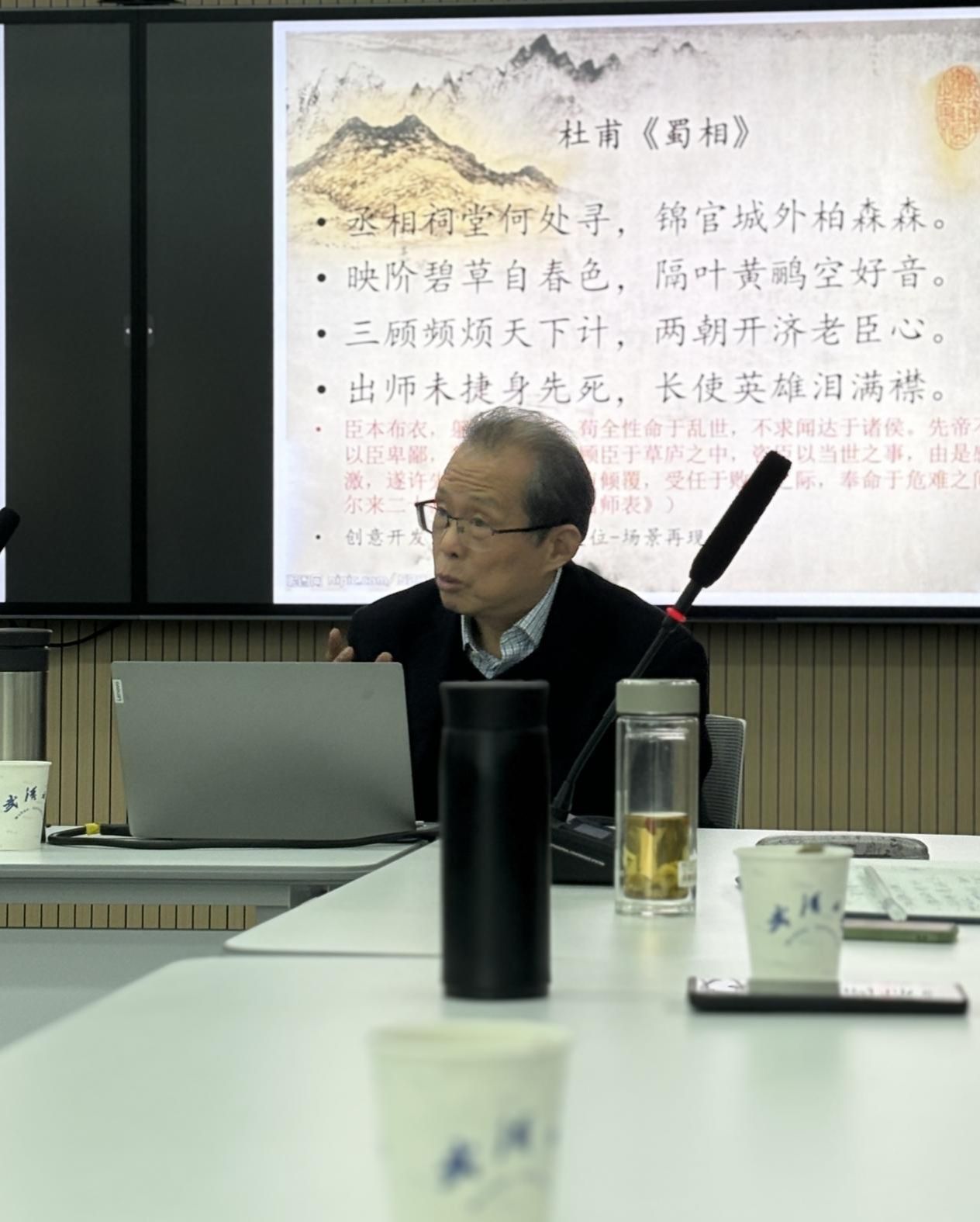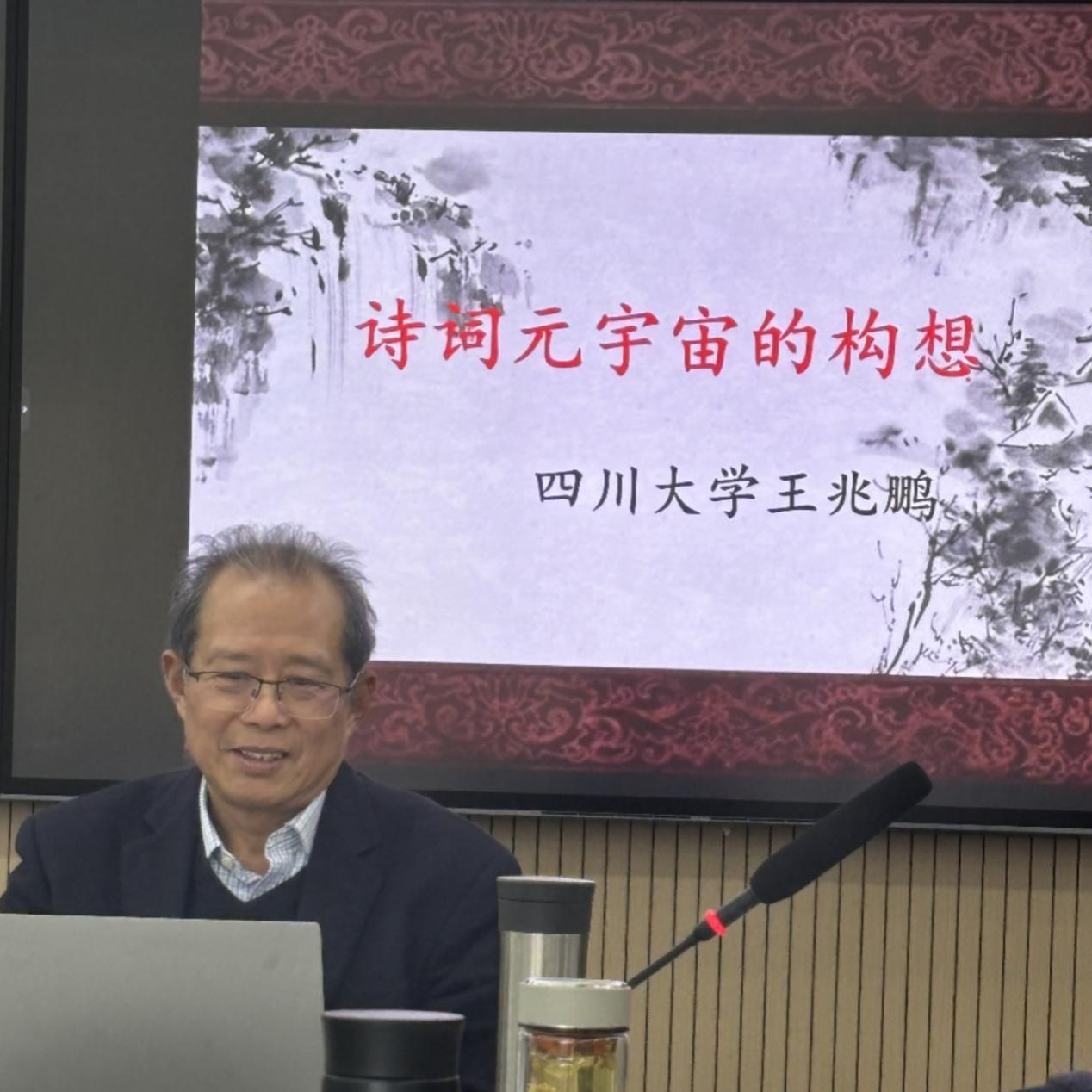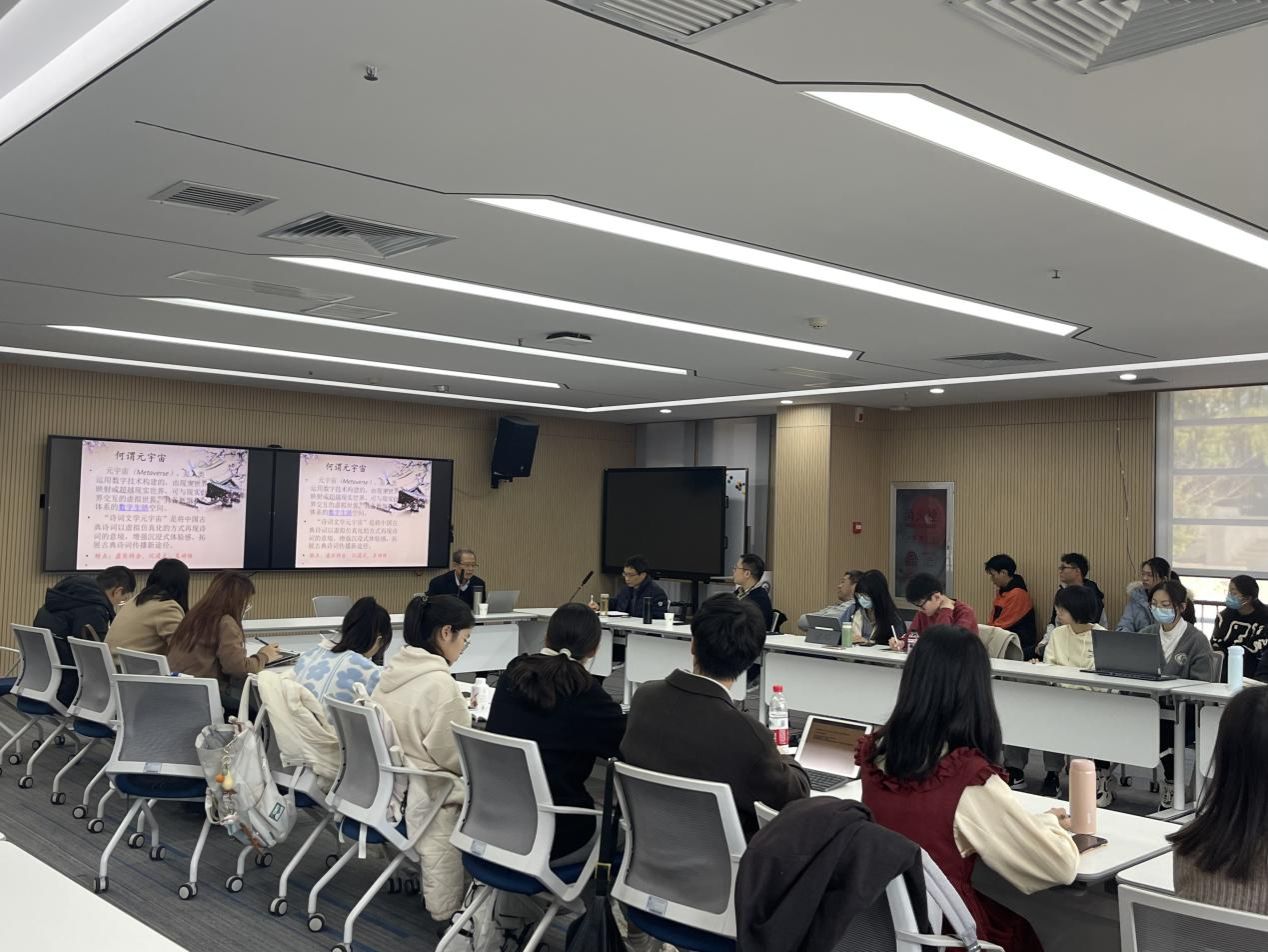 2023年12月7日下午,四川大学王兆鹏教授应邀来足球博彩网站 作题为“诗词元宇宙的构想”的讲座,该讲座由程芸教授主持,曹建国、程磊、沈相辉等老师以及相关专业的同学30余人到场聆听。
