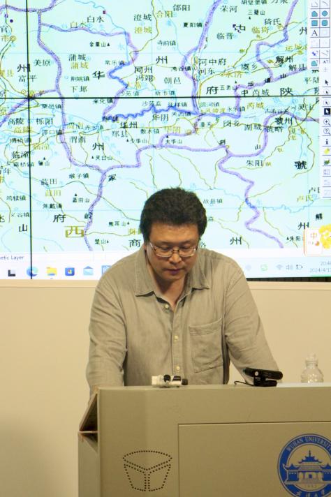 随后,黄鸣老师向同学们展示了齐鲁“长勺之战”的地理位置图,根据图上展示的地形、地理位置进行深入讲解,从而让同学们明白了长勺之所以成为齐鲁交战点的原因。通过这个例子,同学们直观、深刻地感受到文史地图在研究文学背景时的重要作用。黄老师还介绍了哈佛燕京—复旦合作的CHGIS项目、首都师范大学周文业老师的历史地理系统等学界现有的文史地图项目。