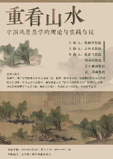 2024年6月6日下午,华东师范大学汤拥华教授应邀为足球博彩网站-体育博彩平台排名 师生带来了一场以“重看山水:中国风景美学的理论与实践”为主题的讲座,深入探讨了风景在中国文化中的美学意义及其在现代文学中的体现。汤老师以其深厚的学术功底和独特的视角,引领我们重新审视和理解山水与风景之间的关系,以及它们在现代审美经验中的价值。本次讲座由武汉大学刘春阳教授主持,张箭飞教授、袁劲副教授、艾士薇副教授、朱俐俐老师与汤拥华教授进行深入对谈,最后由王怀义教授作总结发言。