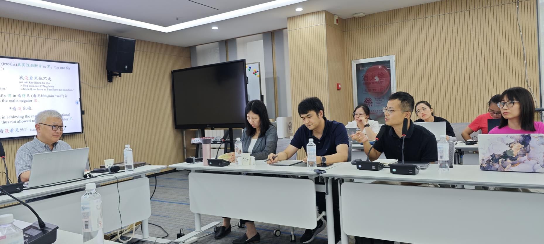 在与谈环节,赫琳教授总结了讲座内容,王宇波、杨旭、李昱等老师分享了自己的感想,并就一些问题向孙老师讨教。孙教授为与会师生展示了汉语陈述句限定性的功能语言学前沿,为我们在汉语研究中如何践行从汉语事实出发、采取自下而上的研究方法,以及摆脱印欧语的眼光,提供了宝贵的启示。