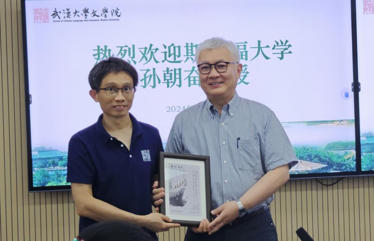 ▲图为程芸副院长向孙朝奋教授颁授“黄侃讲坛”纪念证书