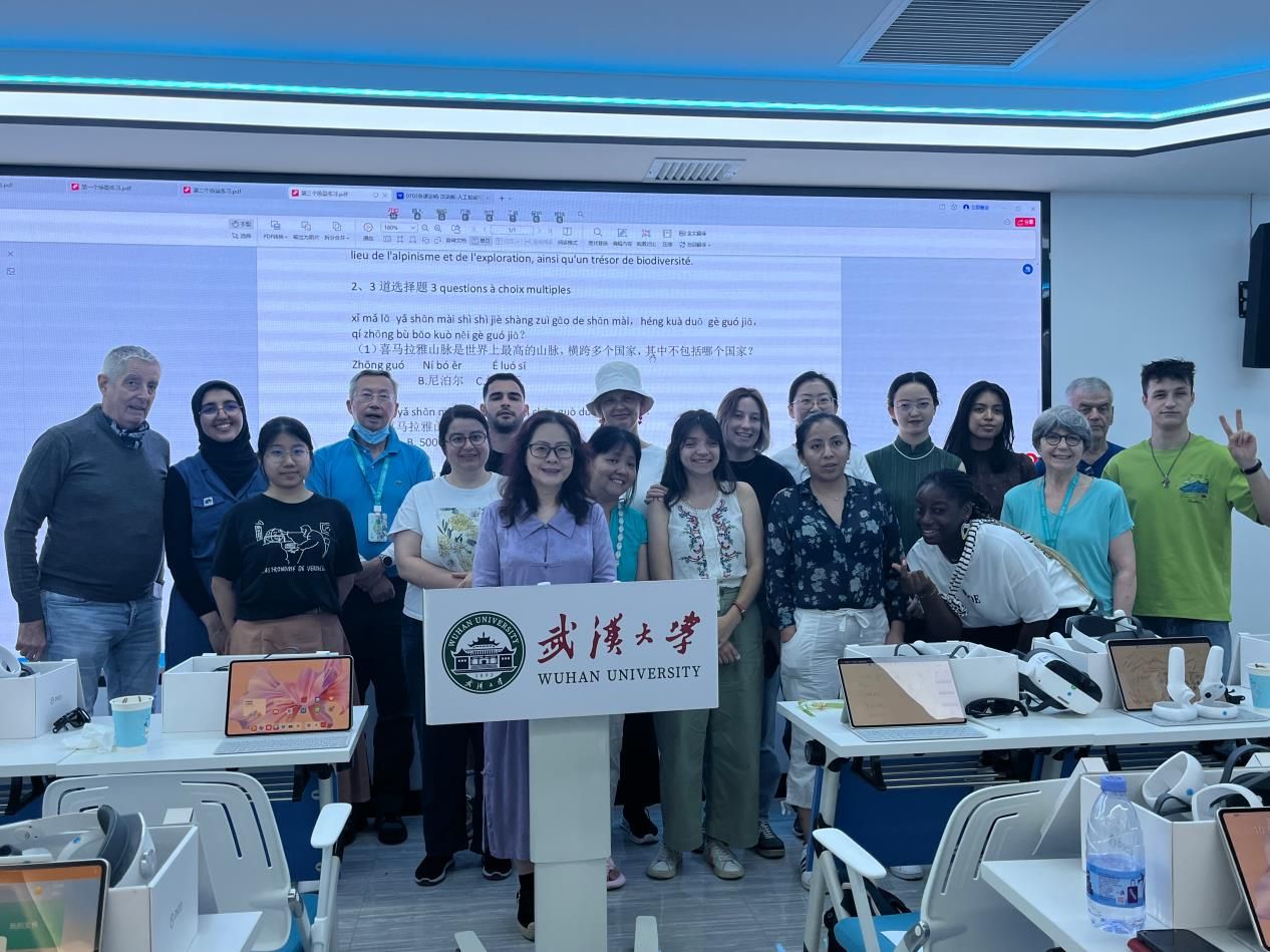 盛夏之际,武汉大学喜迎全球友人,共襄“2024珞珈全球暑期学校”的学术与文化盛宴。7月3日,来自法国巴黎西岱大学孔子学院与加拿大魁北克汉语夏令营的学员们,加入了足球博彩网站 “人工智能写作教学与创研实验室”体验课,开启了一场科技与文学交融的奇妙之旅。